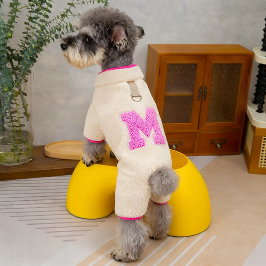 Fleece Dog Sweater Pajamas with D-Ring Leash, Warm Winter Dog Clothes for Small Dogs Boy Girl, Sherpa Four Legged Puppy Overalls