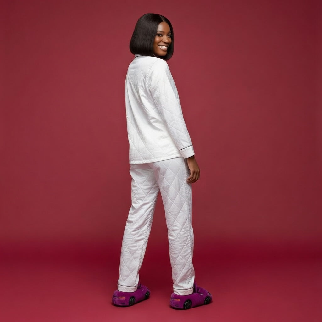 Dans le silence de ta demeure encore endormie, tu savoures ce moment de solitude précieuse, ton café à la main, face à la lumière qui baigne ton intérieur. Portée par cette silhouette épurée au message hospitalier, tu déambules avec une sérénité nouvelle, en harmonie parfaite avec ton refuge secret. Ce rituel de douceur devient une parenthèse enchantée où l'élégance du blanc souligne la quiétude de ton esprit et de ton foyer.