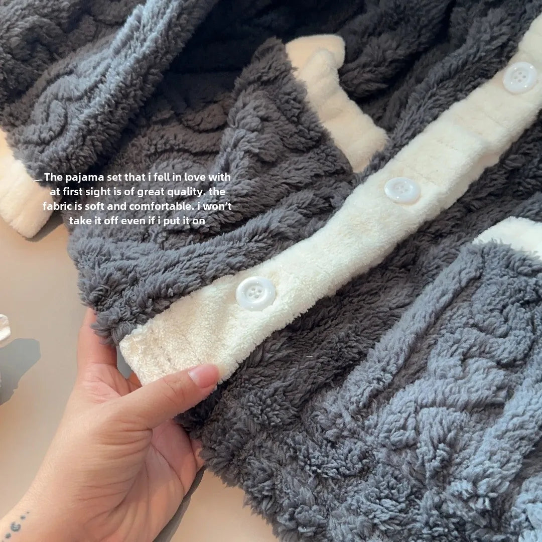 2pcs/Set Autumn and Winter Pajamas Women Thickened Padded Warm Students Coral Girls Clot Velvet Suit Homewear Cardigan Trousers