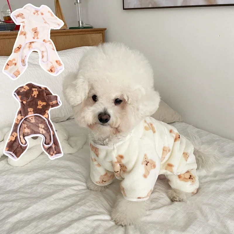 Adorable Bear Print Pet Onesie Sweater Soft Flannel Four-Legged Suit for Dogs And Cats Autumn Winter Pet Clothing