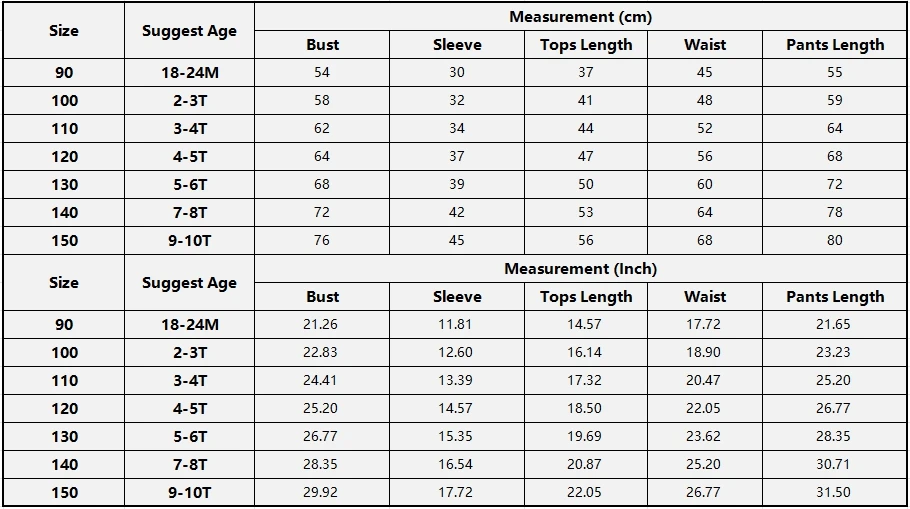 The sizes are mainly according to kids' height.