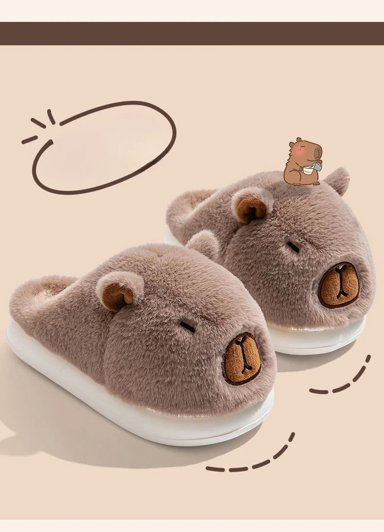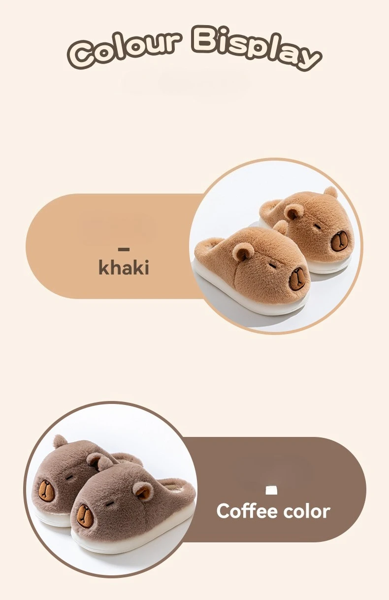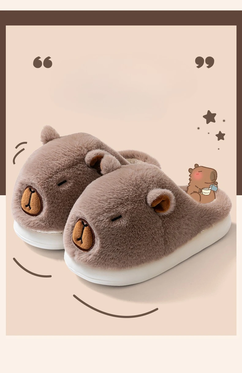 Capybara Cotton Slippers for Women Winter Fashion Platform Indoor Home Shoes Man Warm Plush Non Slip Cotton Floor Shoes Couples