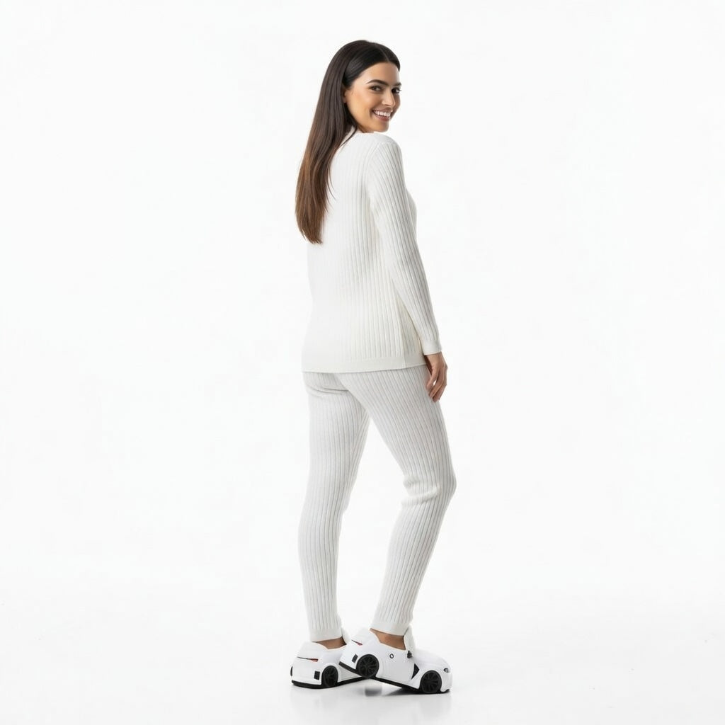 Dès que tu y glisses tes pieds, la texture bouclée d'un blanc pur t'enveloppe d'une chaleur immédiate, évoquant la douceur d'un nuage de coton. Le contact avec la doublure rosée est une caresse subtile, un accueil tendre qui semble suspendre le temps dès le premier pas. C'est une étreinte de confort absolu qui transforme ton sillage en une marche légère sur l'herbe tendre d'un domaine royal.