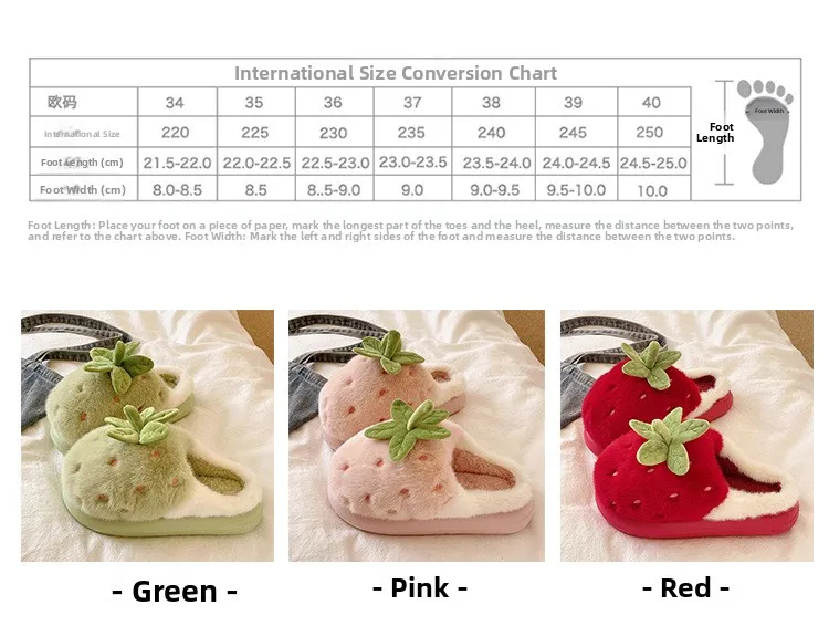 Cute Strawberry Fluffy Slippers Women's Indoor Home Warm Thick Bottom Anti-slip Outdoor Wearable Slip-On Indoor Slippers