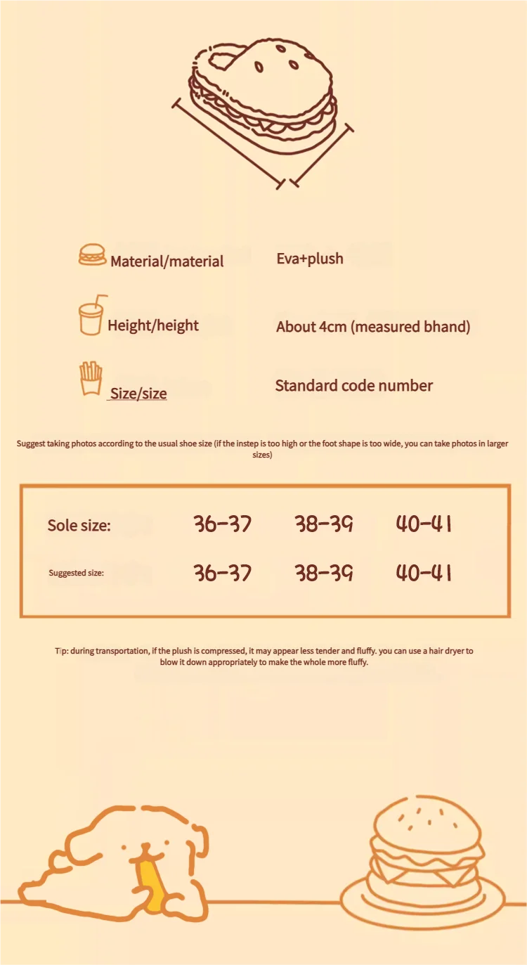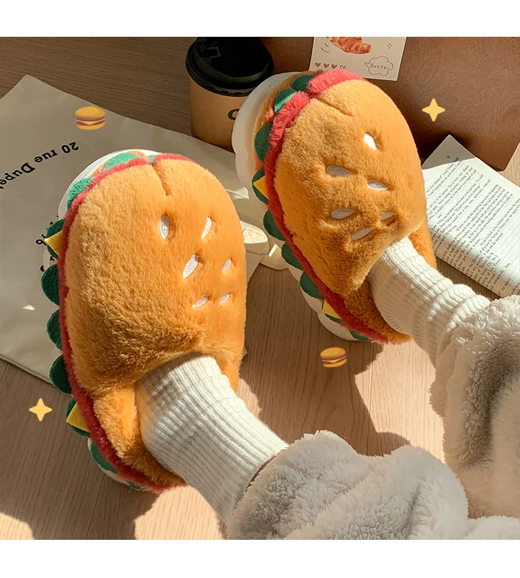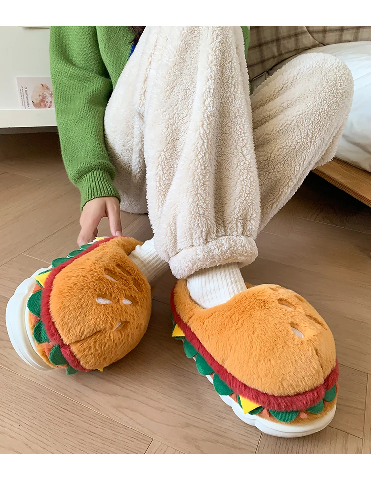 Hamburger cotton slippers for women in winter, new home bag and warm plush couple cotton shoes for women