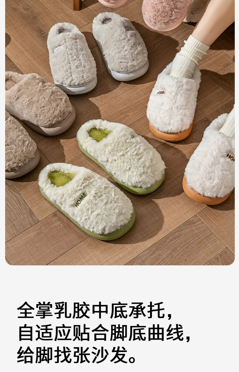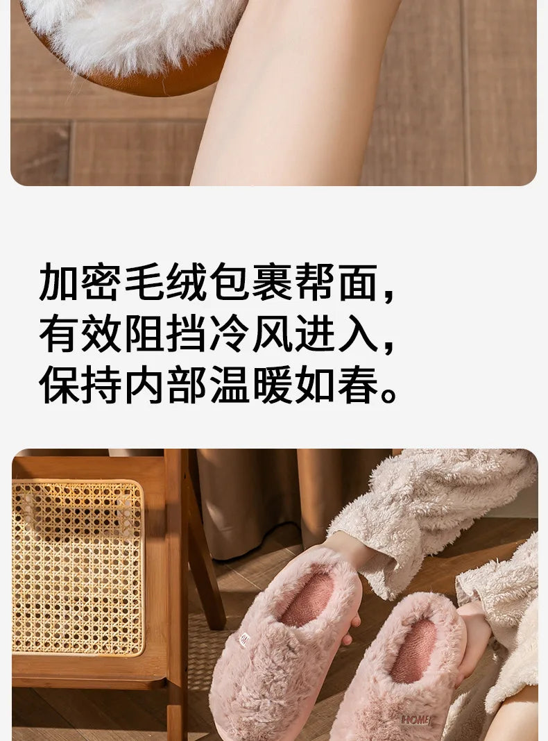 Litfun Winter Fluffy Women's Slippers Soft Sole Non-slip Indoor Slides Leisure Furry Warm Cozy House Cotton Slippers For Women