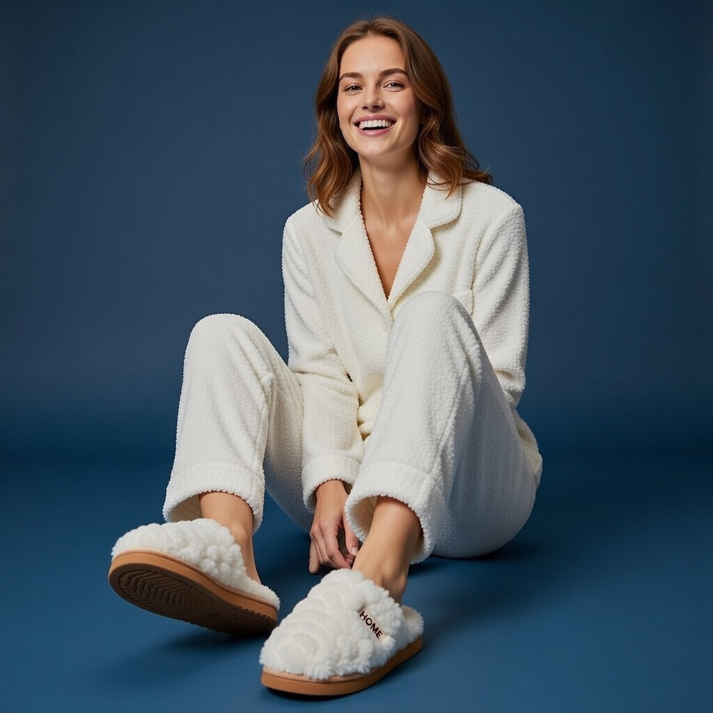 Le contact de cette fourrure de soie contre ta peau est une promesse de volupté qui s'accomplit dès le premier instant. La lumière joue avec les fibres d'un blanc pur, tandis que la semelle aux tons de miel apporte une assise chaleureuse et noble à ta silhouette. Tu ressens la plénitude d'un confort souverain où chaque détail a été pensé pour exalter ta féminité.