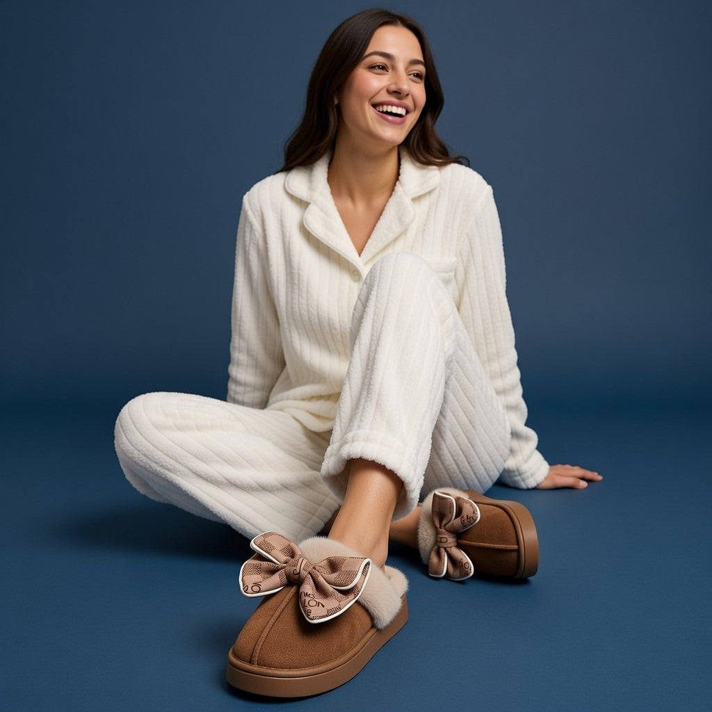 C’est le compagnon discret de tes parenthèses enchantées, comme ce moment où tu t’installes dans ton fauteuil préféré avec un livre à la main. Son nœud sophistiqué souligne ta féminité avec une grâce intemporelle, faisant de tes déplacements silencieux dans la maison un véritable ballet de douceur et de style.