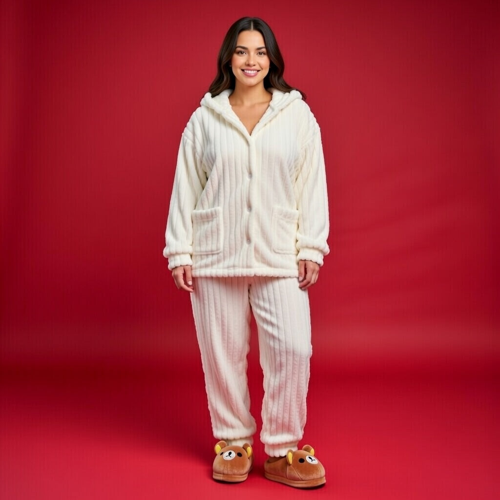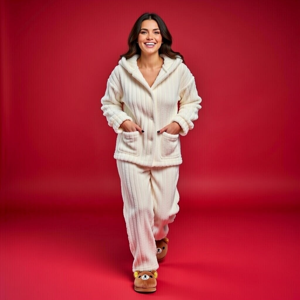 Imagine un retour à la maison où le tumulte de la ville s'efface instantanément. Dès que tu glisses tes pieds dans ces petits oursons, tu es enveloppée par une douceur infinie. Leur texture veloutée est une véritable caresse, transformant chaque pas en un moment de féminité naturelle et de légèreté.