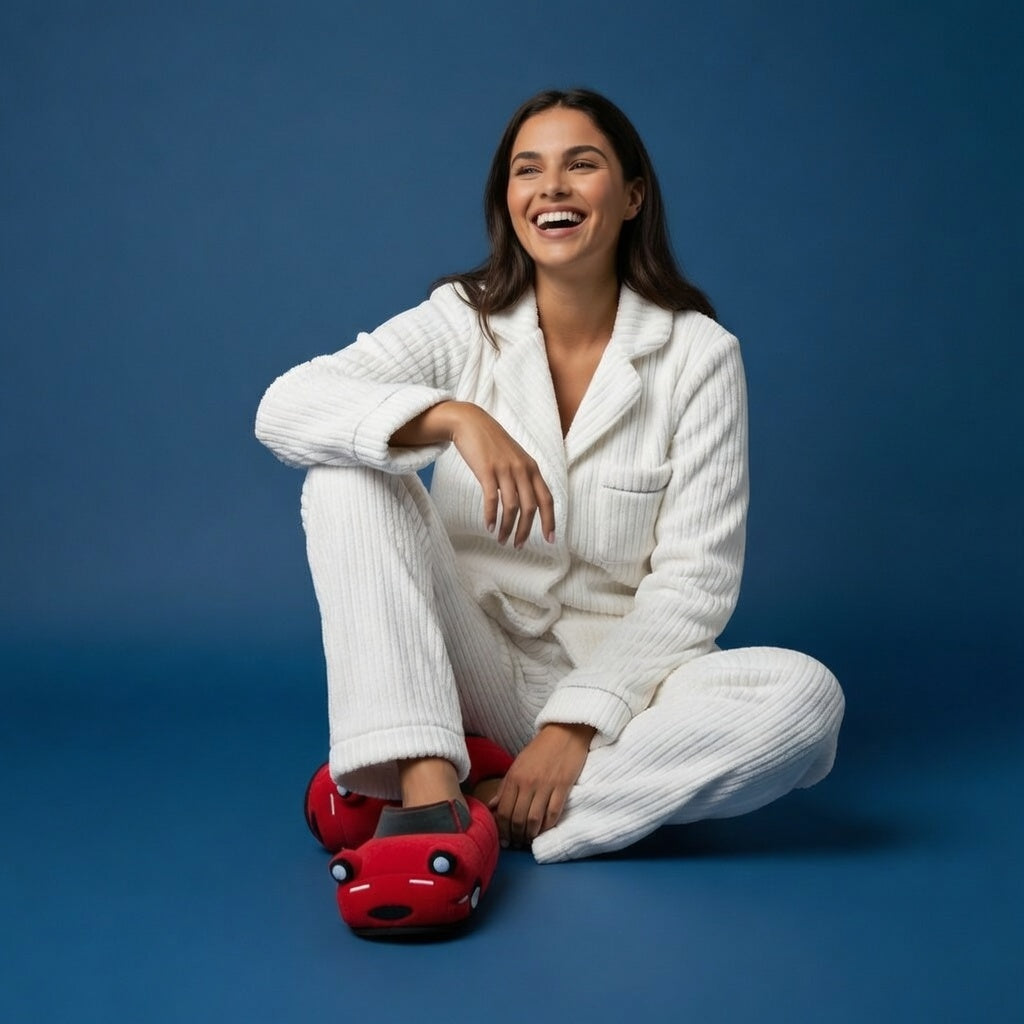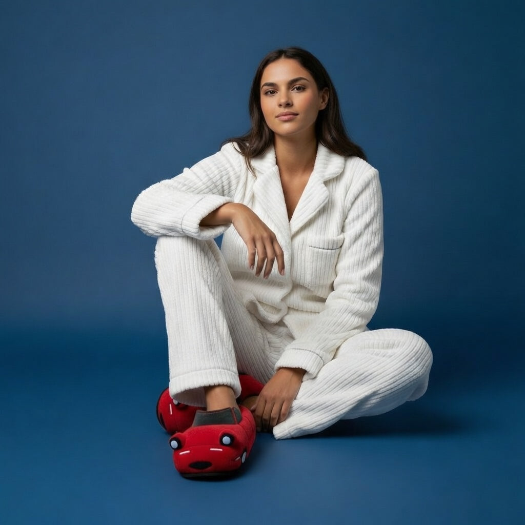 Dès que tu y glisses tes pieds, la matière veloutée d'un rouge vibrant t'offre un accueil d'une chaleur immédiate et d'une douceur absolue. La structure enveloppante, telle un cockpit de soie, protège tes pas avec une générosité sans pareille, diffusant un réconfort qui semble pulser sous ta peau. C'est une sensation de puissance tranquille et de moelleux souverain qui transforme chaque mouvement en une trajectoire de pur bien-être.