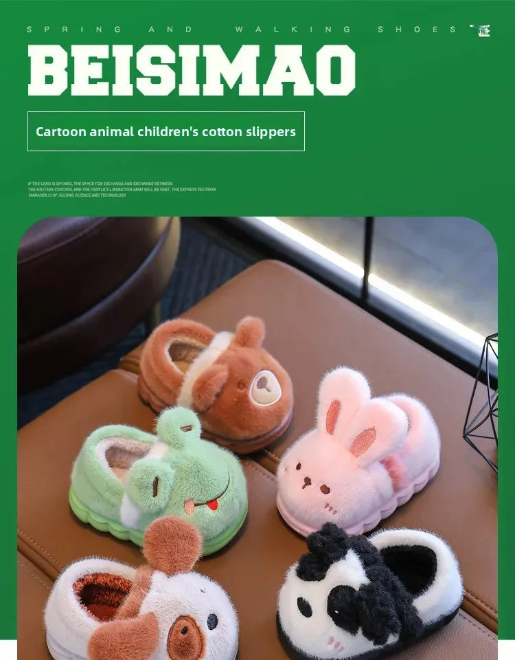 Thickened Cotton Slippers for Children Indoor Outdoor Home Wear Warm Booties with Heel for Boys And Girls in Winter