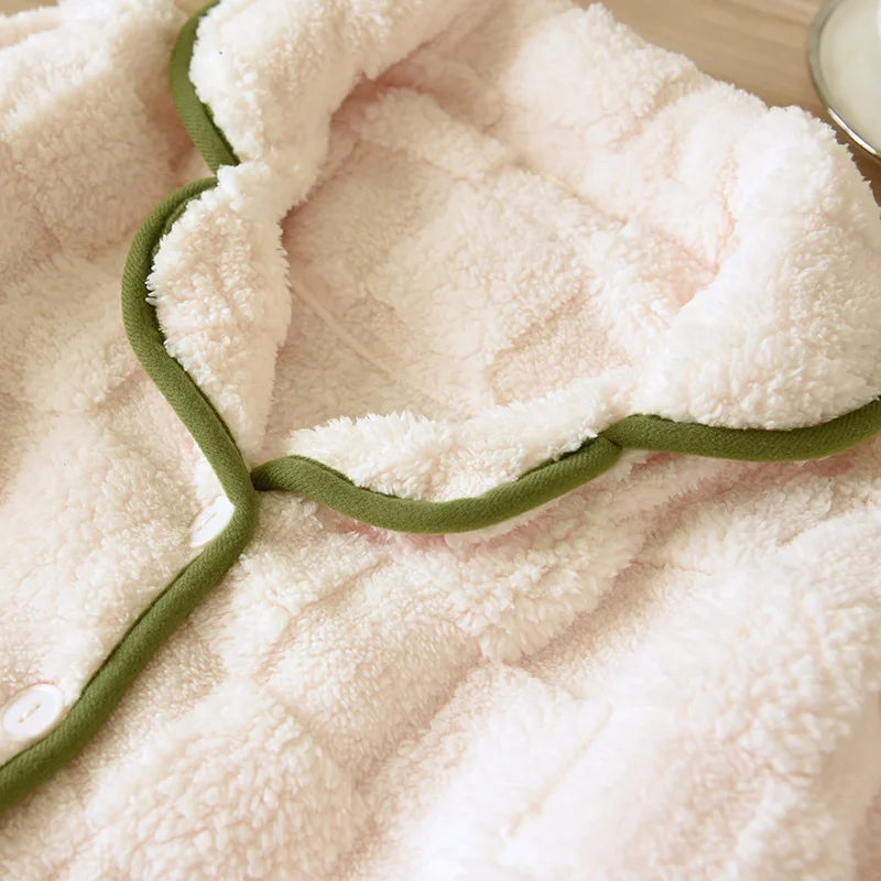 Crafted from thickened flannel material, this pajama set offers superior warmth and comfort during the colder months.