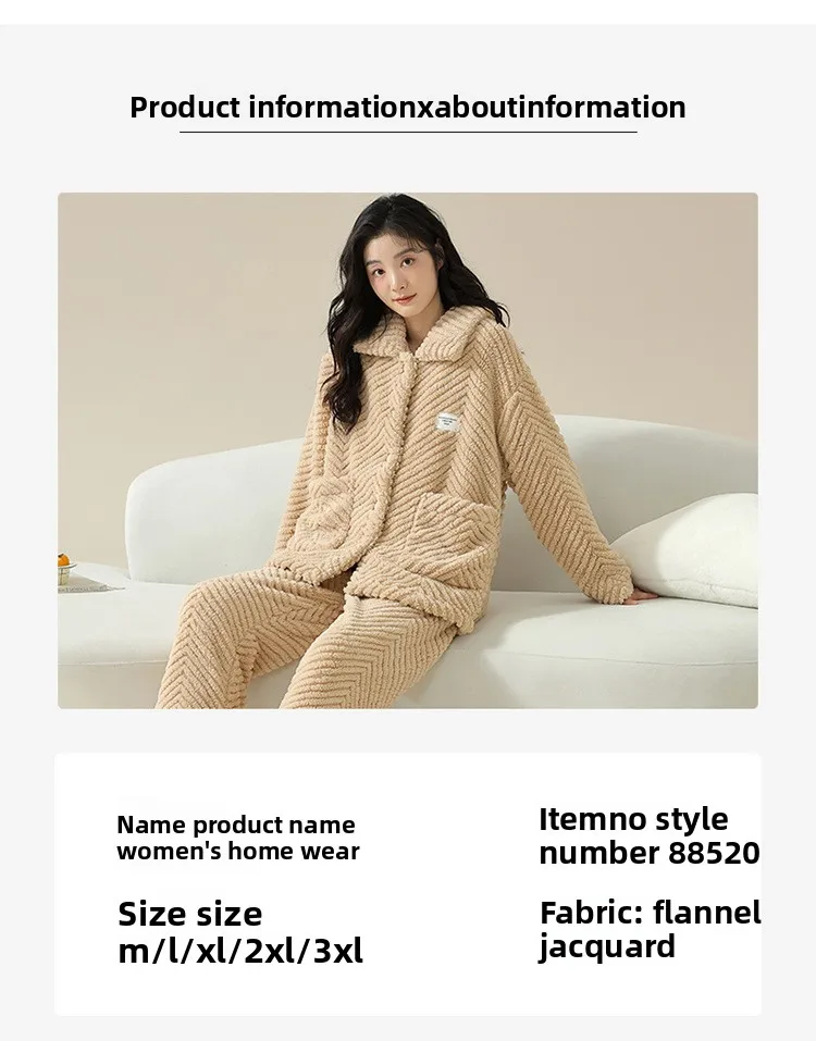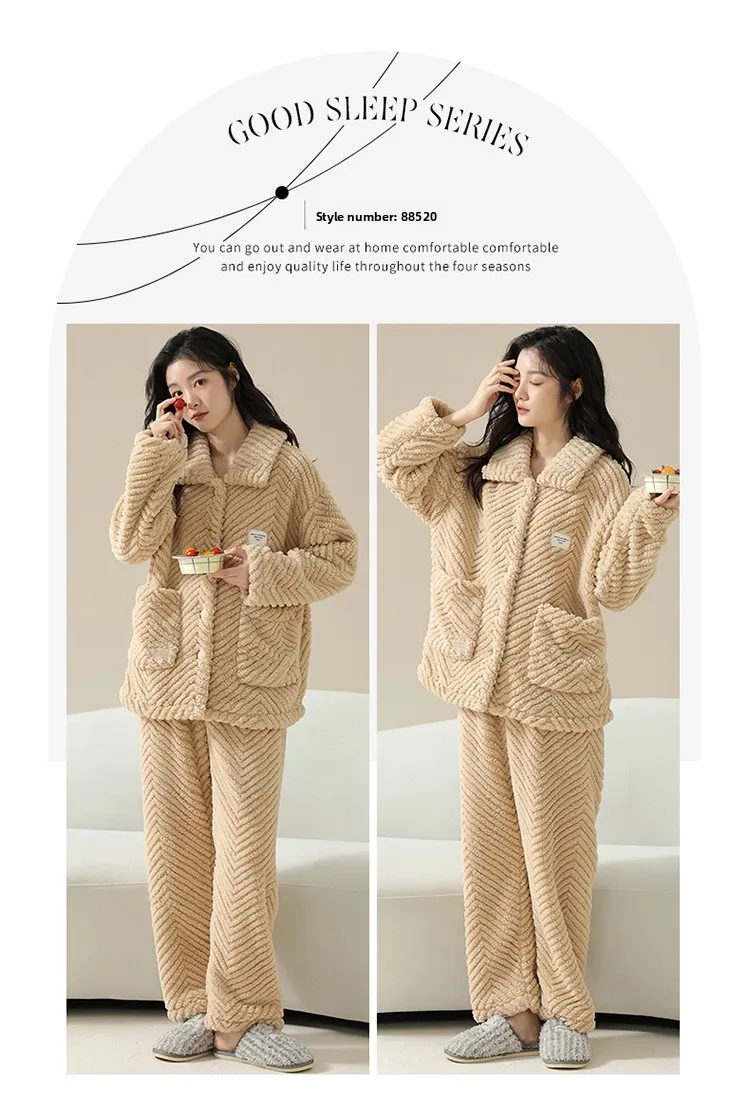 Warm Flannel Sleepwear Set for Women Long Sleeve Long Pants Casual Collar Can Be Worn outside Home Clothes Winter Collection