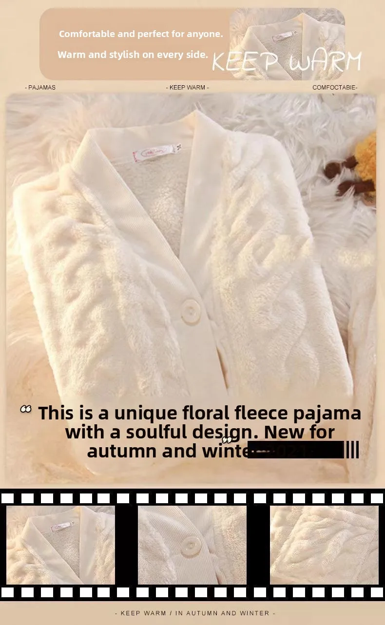 Winter Plush Fleece Thickened Flannel Sleepwear Set Women's Home Clothes Warm Cozy Breathable Long Sleeve Long Pants Home Lei...