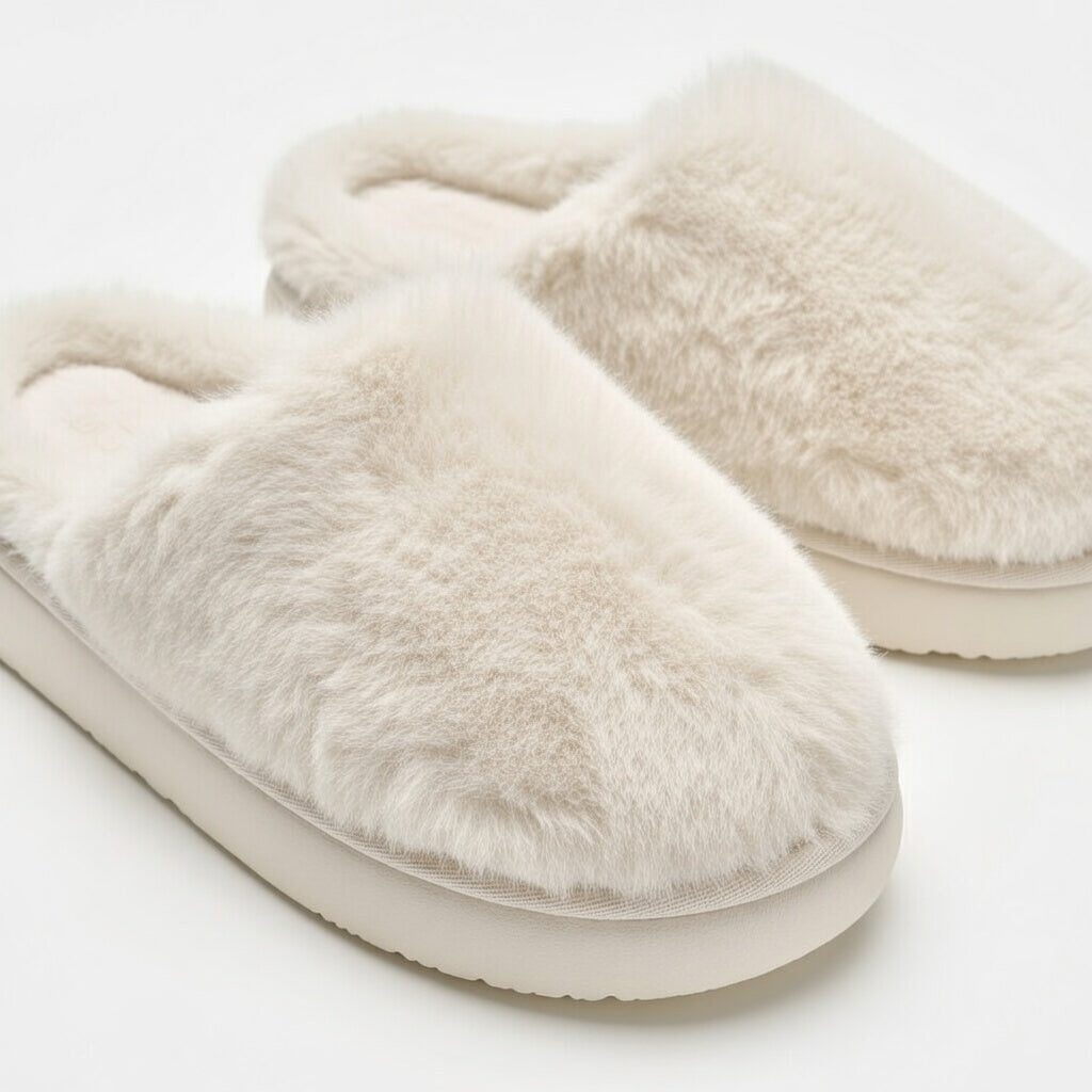 Dès que tes pieds s'abandonnent à cette matière bouclée d'un gris perle intemporel, tu es transportée dans un cocon de chaleur d'une douceur absolue. La sensation de la doublure immaculée contre ta peau offre un contraste divin, évoquant la légèreté d'une crème fouettée ou d'un nuage de soie. C'est une étreinte moelleuse et souveraine qui transforme chaque pas en une caresse sur le sol de ta demeure.