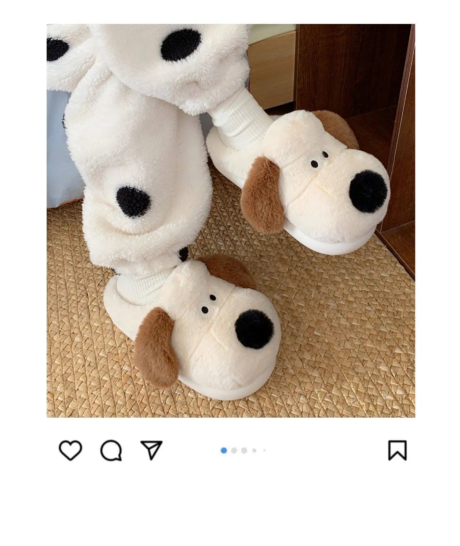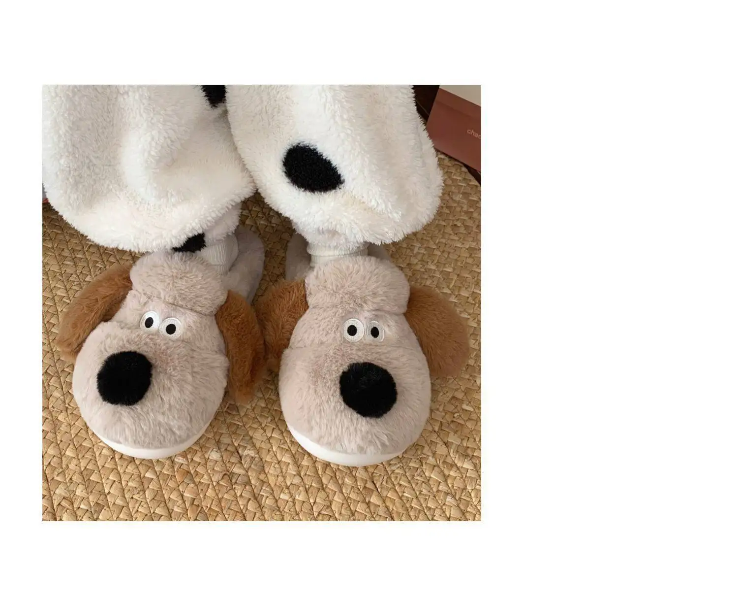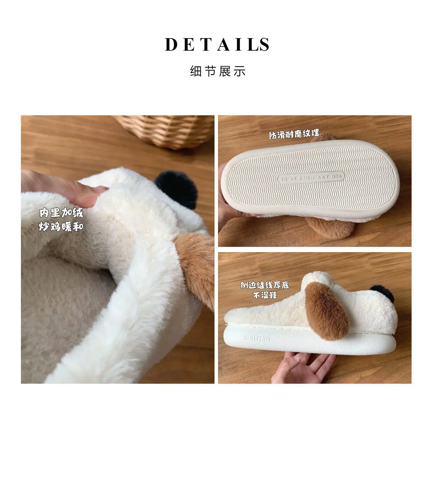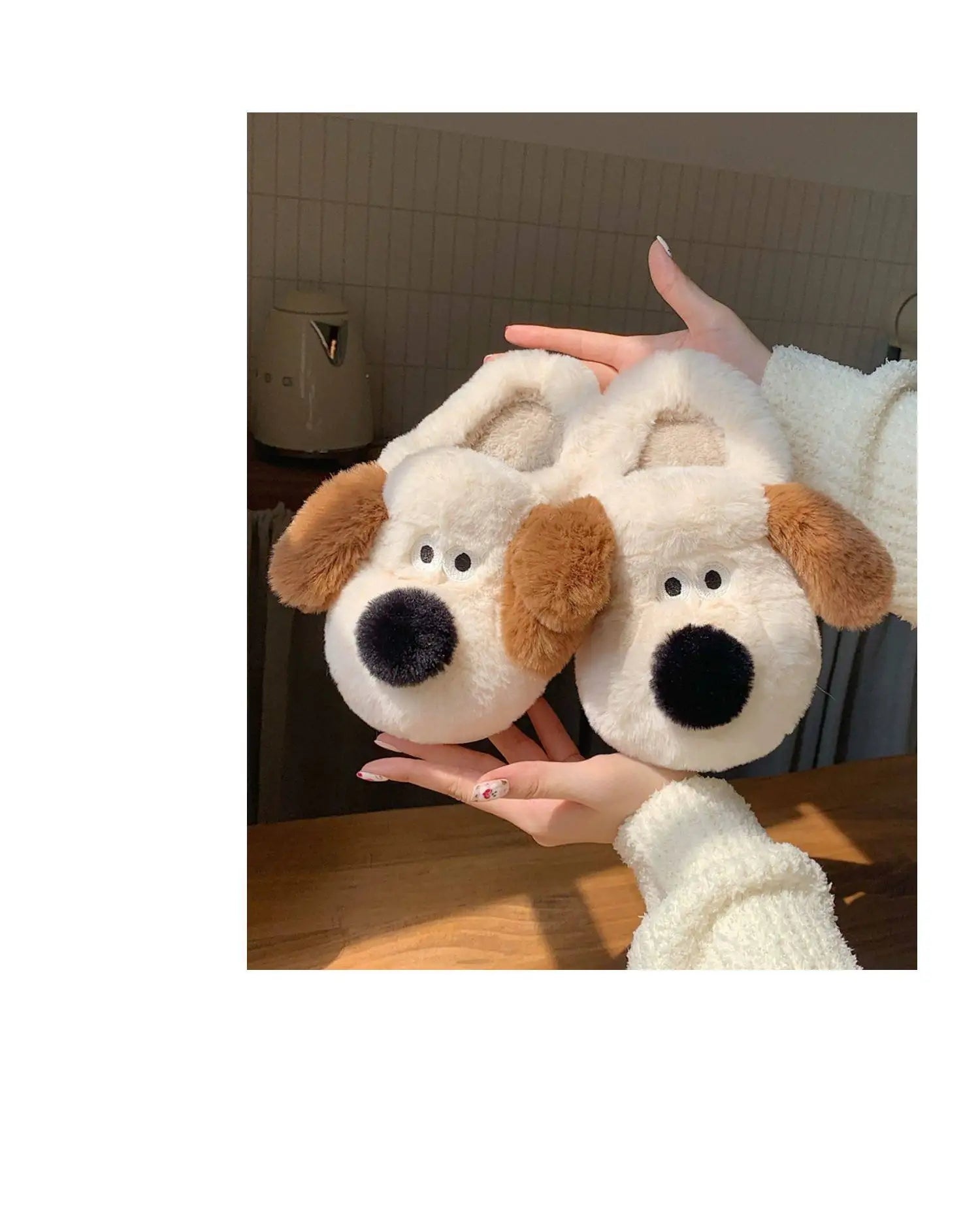 Women Home Soft Sole Cotton Slippers Cartoon Cute Dog Fluffy Slippers Female Winter Slides Ladies Plush Indoor Flats Flip Flops