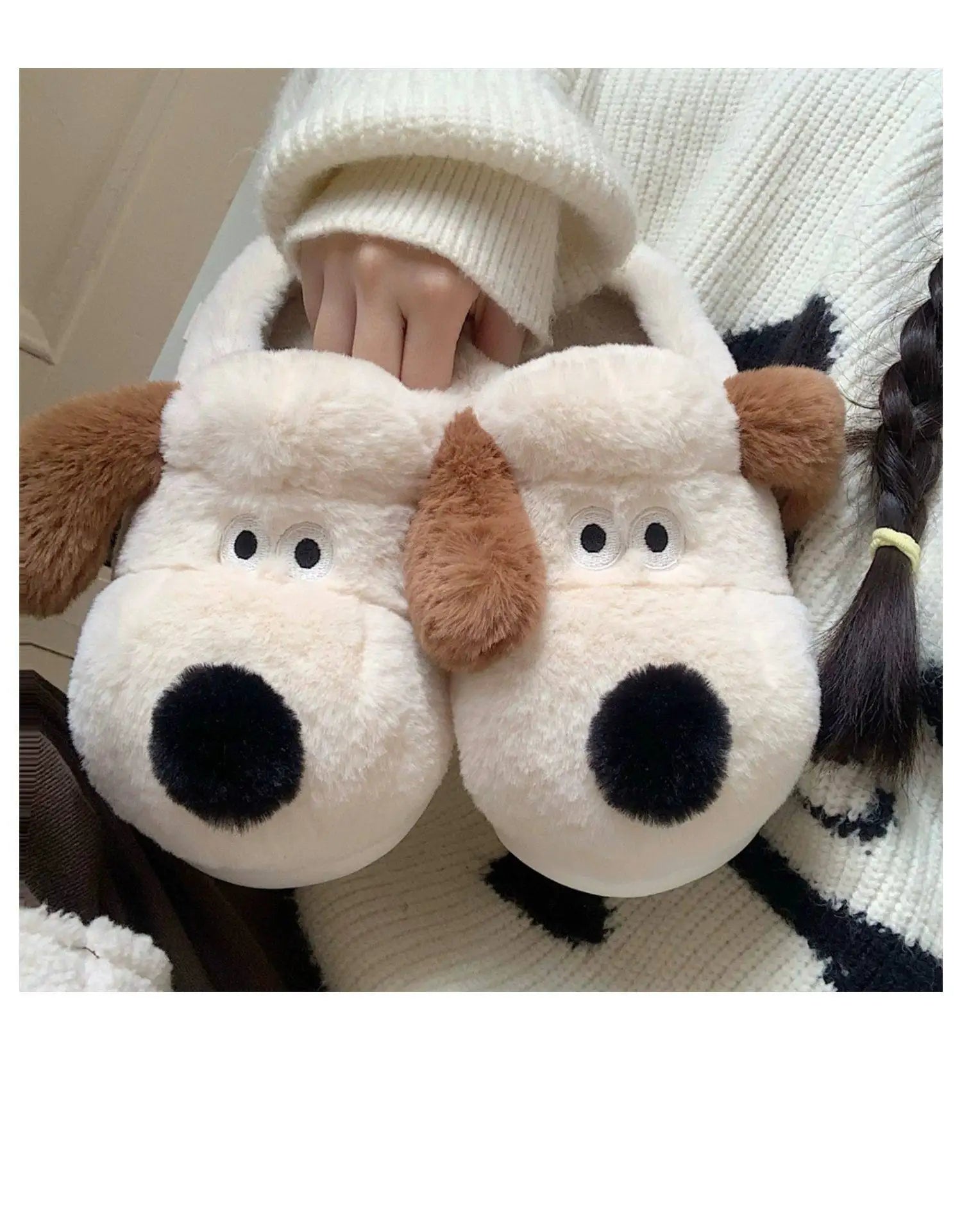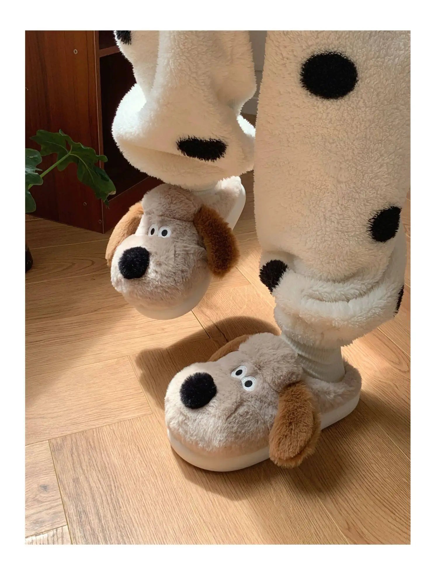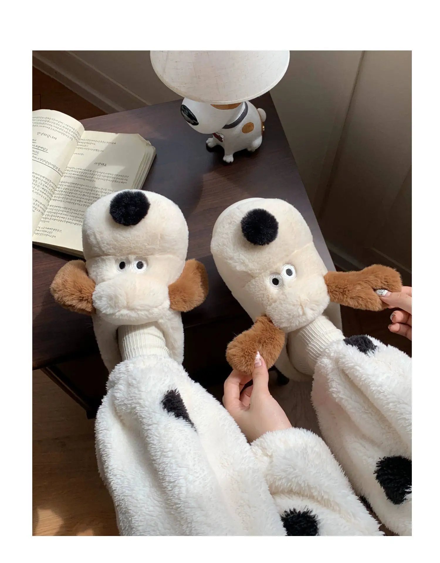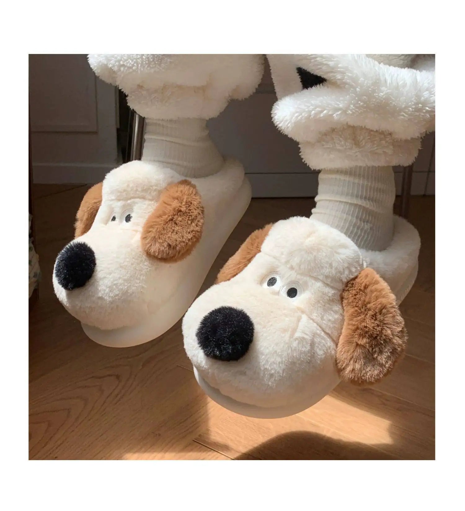 Women Home Soft Sole Cotton Slippers Cartoon Cute Dog Fluffy Slippers Female Winter Slides Ladies Plush Indoor Flats Flip Flops