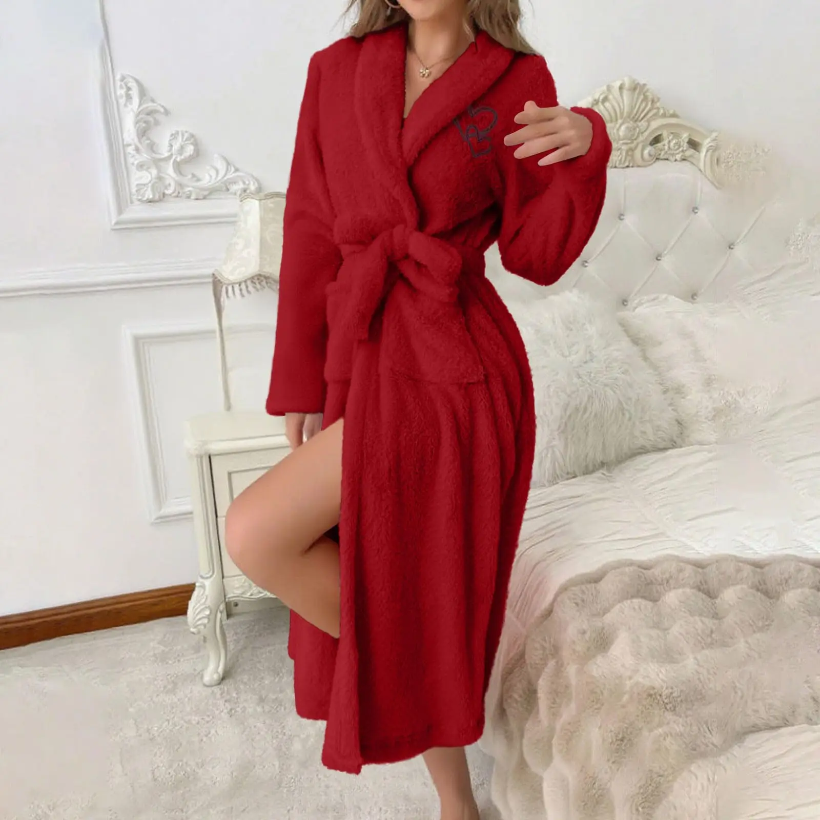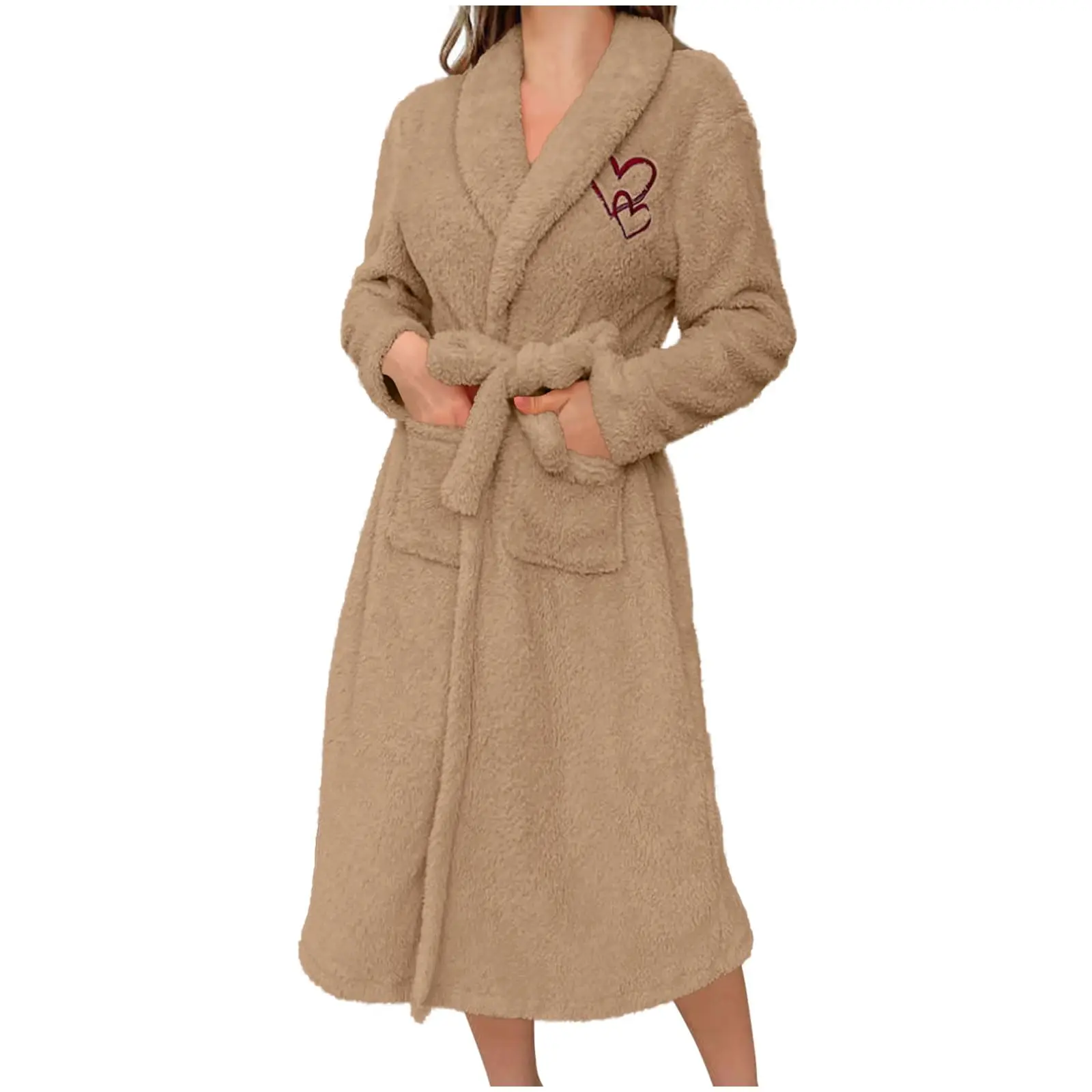 Women'S Long Sleeved Autumn And Winter Warm Bathrobe Home Clothes Plush Sleeping Robe Home Clothes For Home Wear