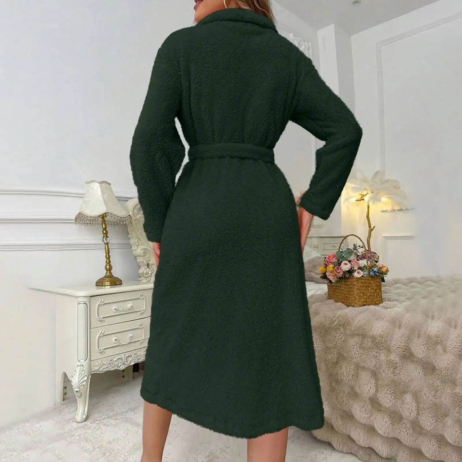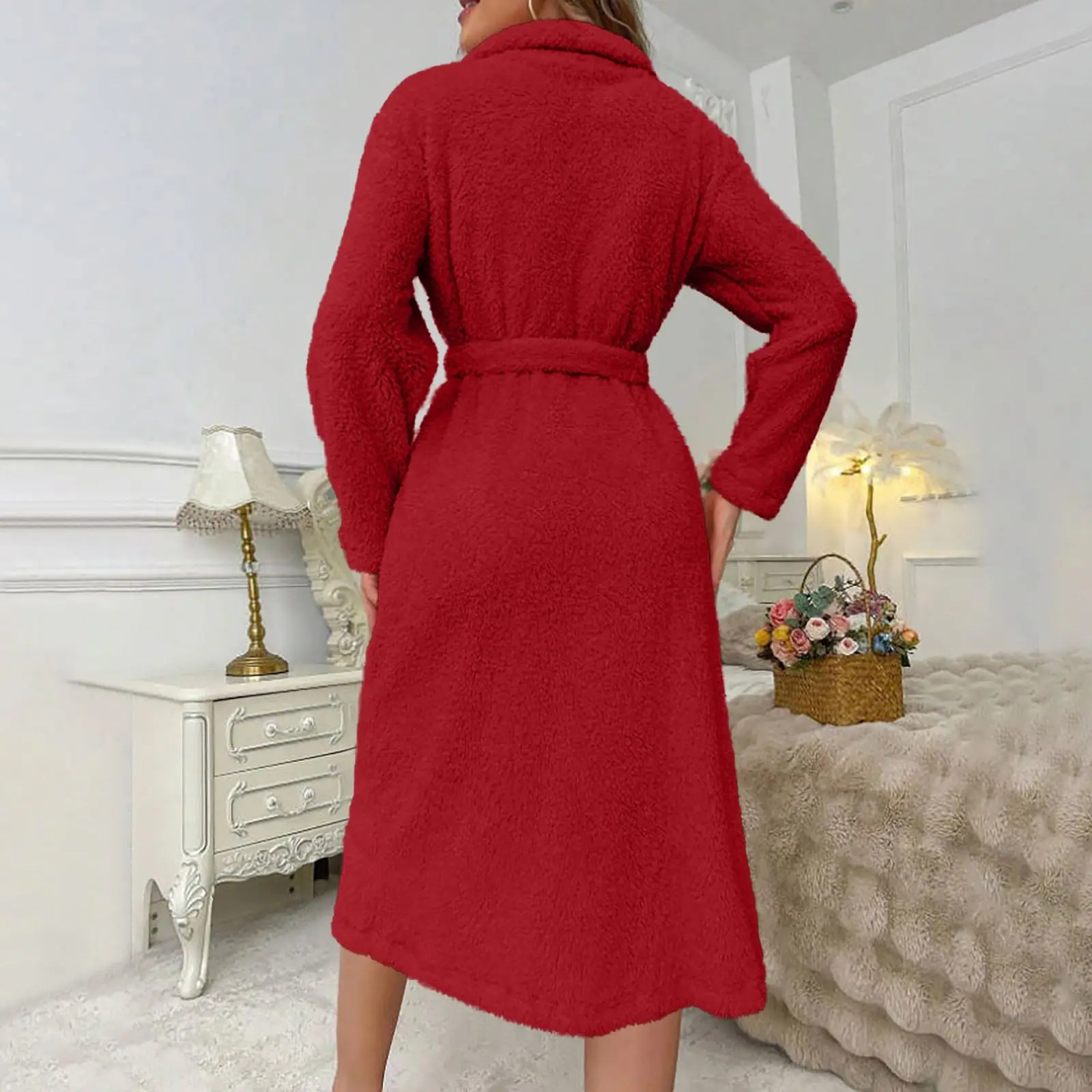 Women's Solid-Color Long-Sleeve Autumn/Winter Warm Bathrobe Plush Homewear Robe Homewear Set